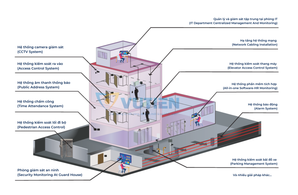 - Giải pháp điện nhẹ tích hợp: Đồng bộ hóa nhiều hệ thống, mang lại sự hiện đại và tiện ích cho công trình.